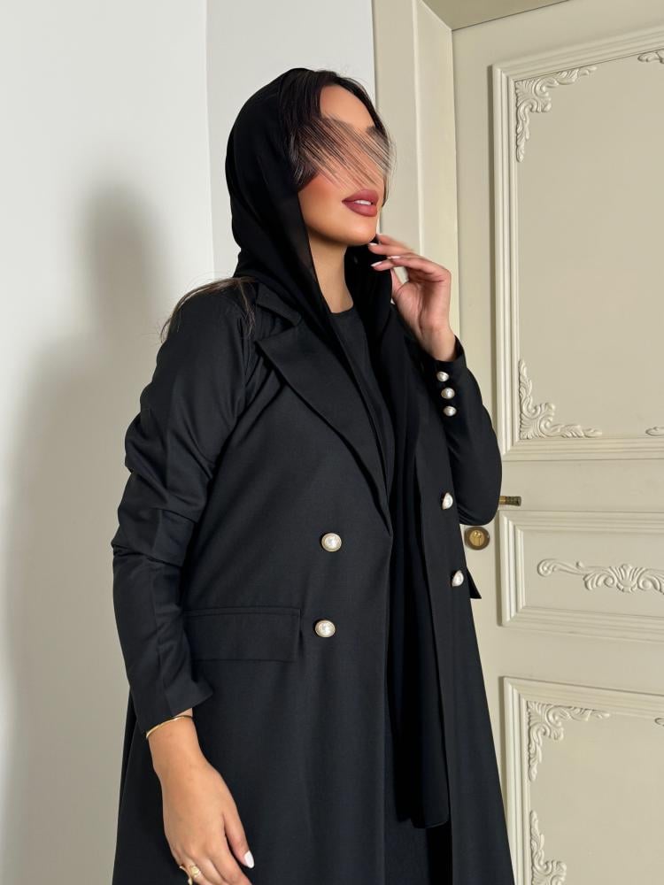كريب بليزر مبطن رسمي بأزرار ذهبيه مع لؤلؤ وكتافات صغيره مع طرحه ساده.