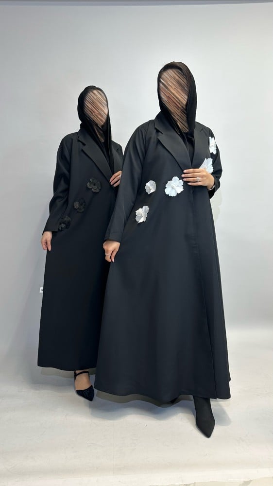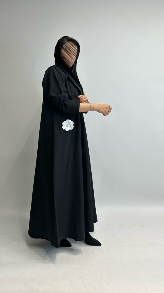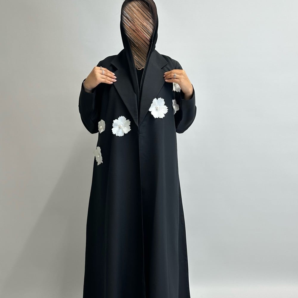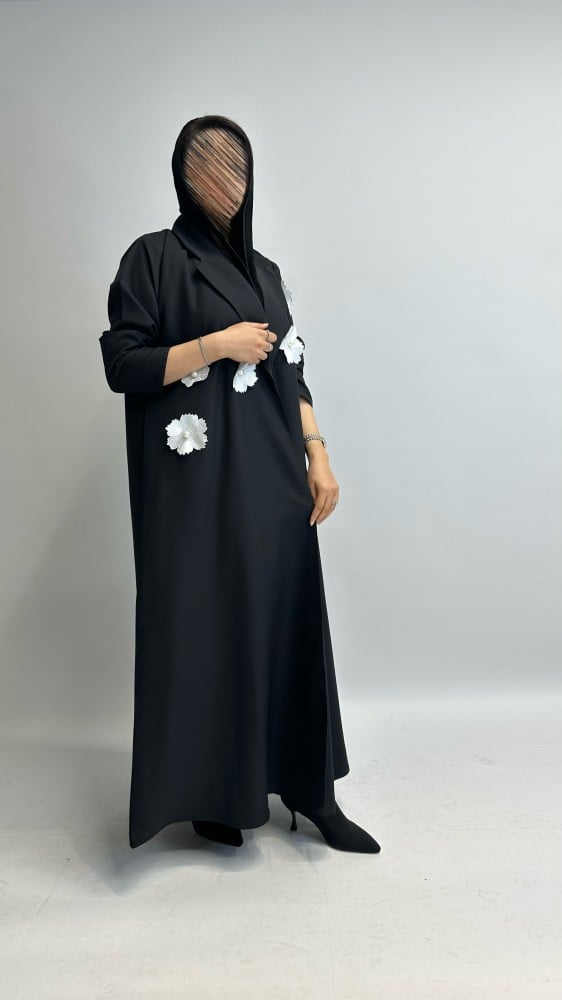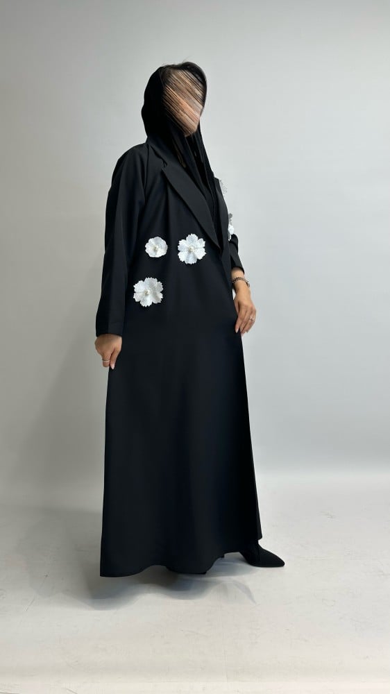 عباية بليزر كريب مع ورود بيضاء 🤍